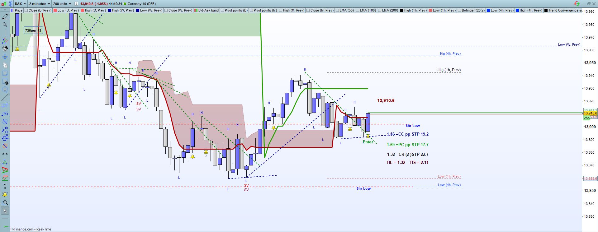 This is the package for the program indicator with Indicator Trend Bias Confirmations & signals including 5 indicators, one for the HTFs named Volume Bias and the others for the 2 minutes chart. The 4 minute program indicator can run on the 4 minutes also. Developed on the Dax they can be utilised on other pairs or indices but have been developed ont he Dax and should be applied on the 2 minute chart for faster intraday trading. I utilise on Cable and EURUSD also.